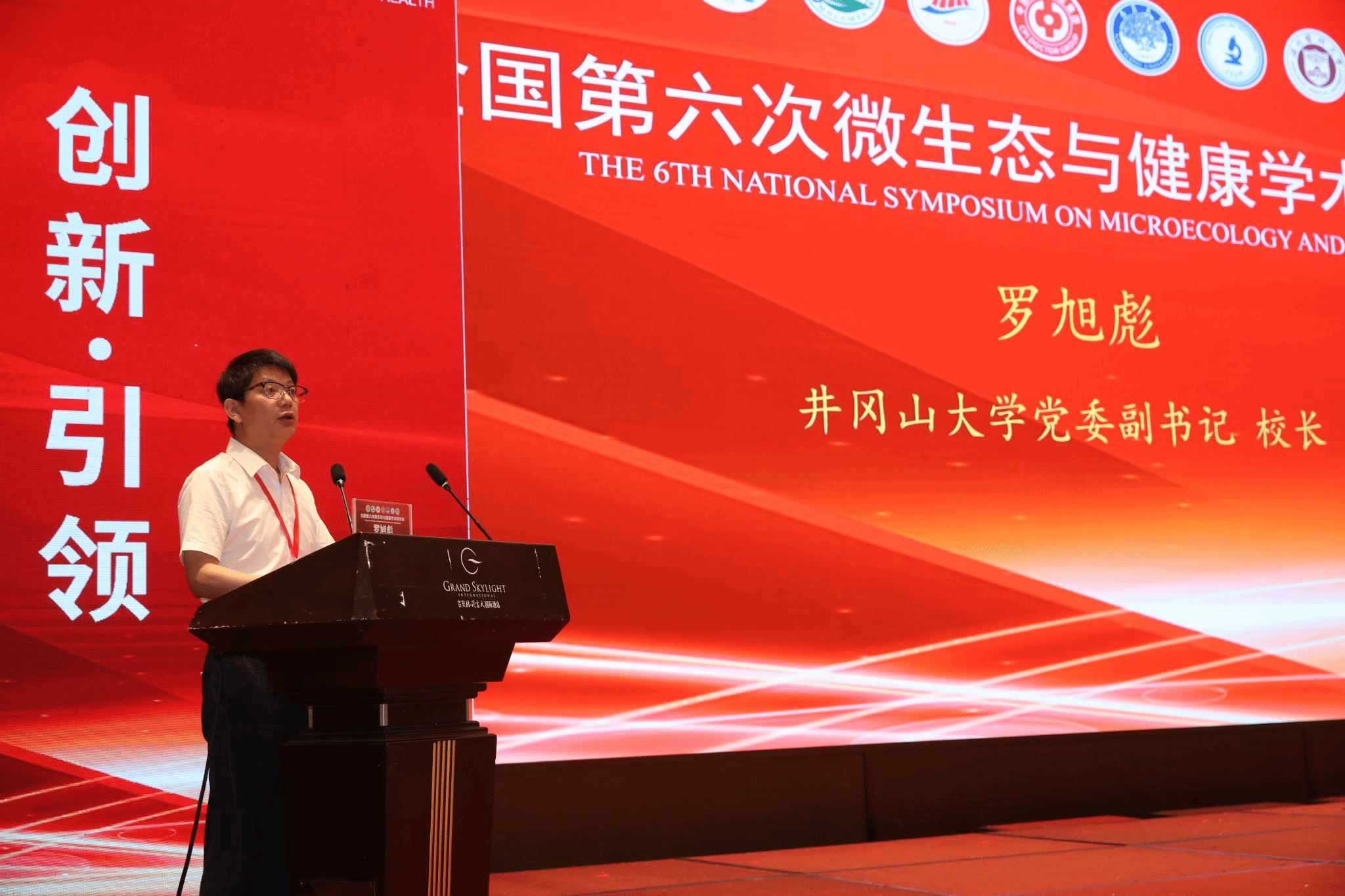 2025年7月3日至5日,由中国医药教育协会及其微生态与健康专业委员会主办,井冈山大学、中源国际医生集团、南昌大学和江西微生物学会共同承办,温州医科大学和中国吉安两山学院协办的“全国第六次微生态与健康学术研讨会”在江西吉安顺利召开,国际生态生命安全科学院院士、中国医药教育协会终身荣誉会长黄正明教授,中国工程院院士、国际食品科学院院士谢明勇教授,国际生态生命安全科学院院士、中国医药教育协会微生态与健康专业委员会主任委员肖纯凌教授,沈阳医学院党委副书记梁浩教授,校党委副书记、校长罗旭彪,井校党委副书记肖宜安,中源国际医生集团董事长罗杰,江西省科协副主席章新建等应邀出席会议。校长罗旭彪教授致辞。来自中国科学院、浙江大学、南昌大学、南方医科大学、北京协和医药等高校和科研院所300余名代表参加本次会议。开幕式由南昌大学魏华教授主持。
