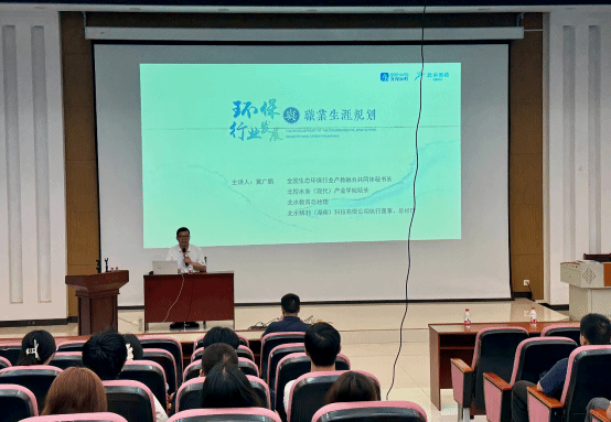 讲座中,冀广鹏立足国家“双碳”战略全局,围绕环保行业发展趋势、人才需求变革及培养路径三大核心维度展开深度分享。结合自身在水务环保领域二十余年的实践经验,他指出,当前环保行业正加速向国际化布局、复合型业态、智能化运营方向转型,这一变革对未来行业人才提出了更高标准的能力要求。他进一步明确,未来十年环保行业急需的核心人才,需具备“国际视野、数智思维、跨界融合、实践创新”四大核心素养,为在场学生清晰勾勒出职业能力提升的目标框架。针对学生成长与就业需求,冀广鹏鼓励学生在夯实专业基础的前提下,主动拓展实践渠道,积极参与高水平职业技能培训及行业赛事,通过“以赛促学、以学促创”的良性循环,持续提升综合竞争力,为未来投身环保行业筑牢能力根基。