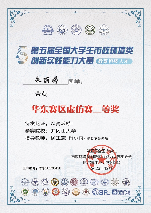 为培养市政、环境学科大学生实践创新能力,推动我国高等学校实验教学改革,推进实践育人工作,由哈尔滨工业大学、同济大学、北控水务集团有限公司共同主办的第五届全国大学生市政环境类创新实践能力大赛于2023年12月6日落下帷幕。我院师生在华东赛区选拔赛取得佳绩,并顺利进入全国总决赛,取得我院师生参加该项赛事最好成绩。