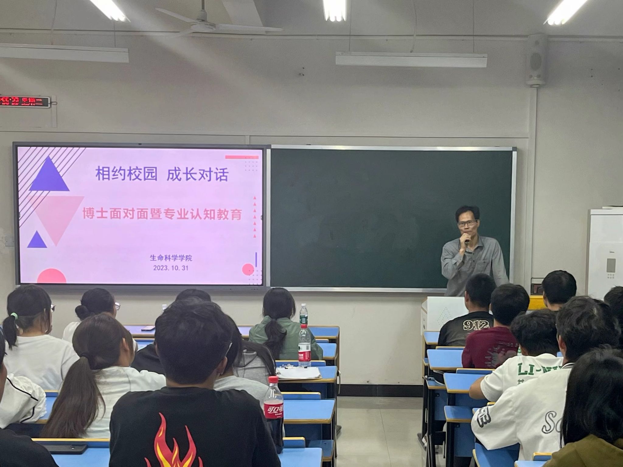 为加强生命科学学院学子对所学专业的认知,发挥博士教师的示范引领作用,生命科学学院于10月底至11月初以专业为单位分别开展博士面对面暨专业认知教育。本次主题教育针对2023级3个专业开展,分别邀请了柯坫华、张争光、李蜜、胡萃、莫苑敏、殷帅文、孙惠敏等七位博士教师同新生展开交流。