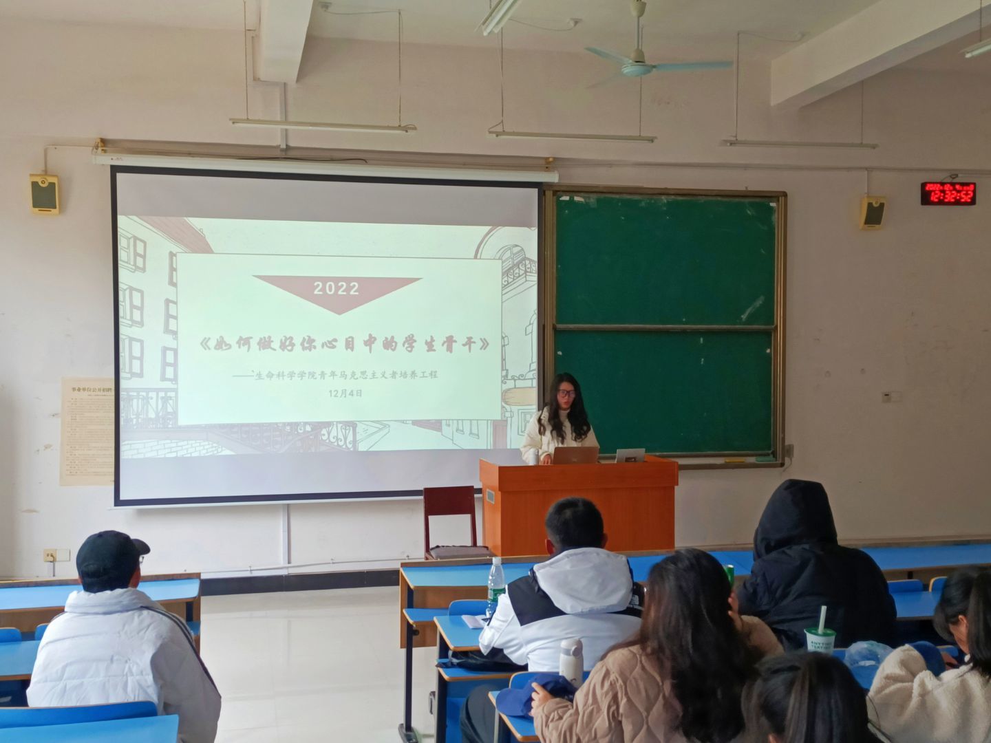 为提高学生骨干综合素质,端正学生骨干态度,我院于2022年12月4日在11栋B106开展以“如何做好心目中的学生骨干”为主题的培训课程。此次课程由辅导员肖虹主讲,青马班七十余人参与。