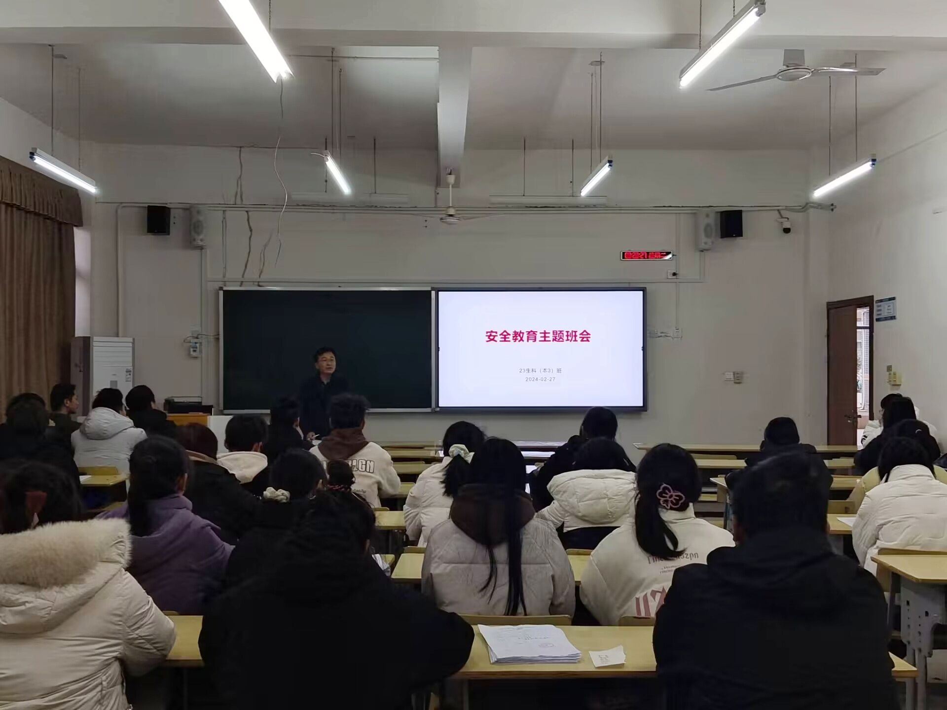 在各班举行的“安全教育”主题班会上,学生们积极参与,纷纷表达自己对安全的认识和体会。有的同学分享了自己春节在家乡参与了消防排查志愿活动,学会了灭火器的使用方法,提醒大家要时刻注意消防安全;有的同学则谈到了食品安全的重要性,表示在平时的生活中要注意提高食品安全的辨别,提倡更加健康的生活方式;有的同学则谈到了预防心理健康的重要性,认为只有保持良好的心理状态,才能更好地应对生活、学习和工作中遇到的种种挑战。各班主任针对同学们的发言进行了总结,并对大家提出了更高的要求,并强调安全教育不仅仅是知识的传授,更是一种生活态度和行为习惯的培养。在面对突发事件时,要学会冷静应对,做到自我保护。同时,老师们还提醒同学们,在日常生活中要严格遵守校规校纪,严禁在学生宿舍使用违章电器、禁止在校园内违规骑行电动车,学院将进一步加大安全隐患的排查力度,保障广大学子的生命安全。