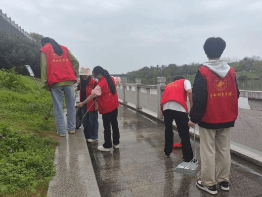在活动期间,我院与数理学院的志愿者们展现出了高度的积极性与协作精神。他们认真细致地寻找并清理了公园内残留的垃圾,为滨江公园的优美环境贡献了自己的力量。同时,志愿者们在清扫过程中还对沿江钓鱼的老人进行了温馨提醒,提醒他们注意安全,避免在涨水时因滑倒而发生意外。