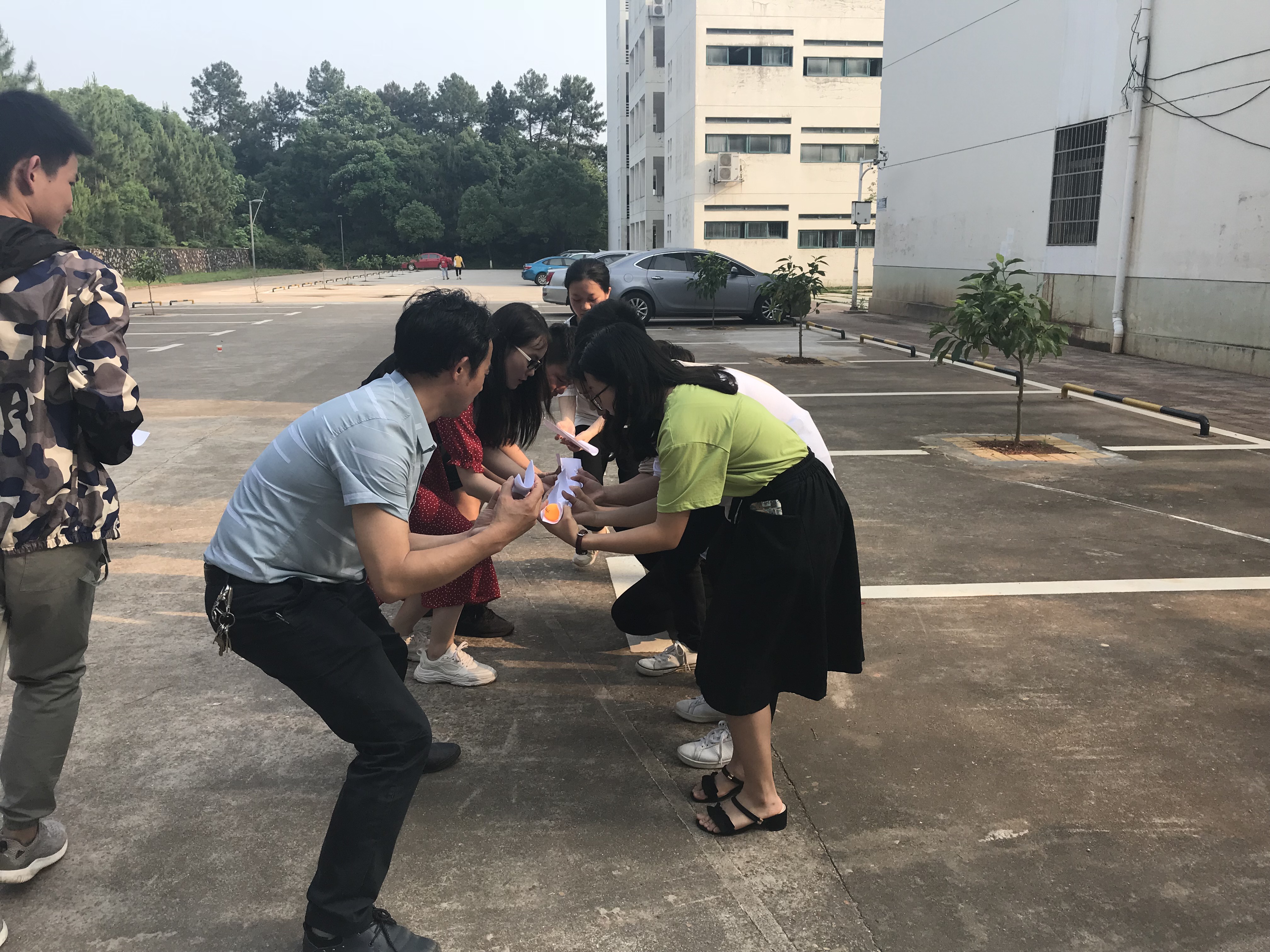沙龙活动结束后,大家又展开户外拓展活动。活动伊始,各小组响亮地喊出自己的队名及口号,气势十足,势在必得。一块五毛、乒乓传递、跳绳接力等活动火热开展,老师也与大家一道积极参与活动,现场欢声不断,气氛热烈。