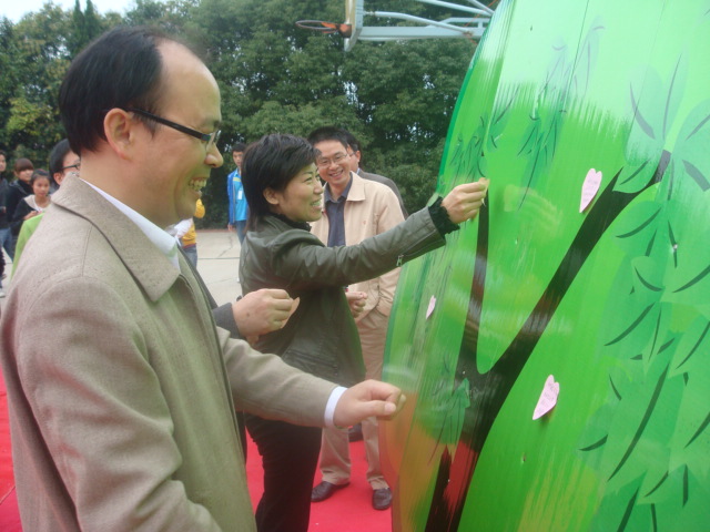 开幕式后,举行了“参与环保,关注环境,关爱地球”环保爱心贴活动。现场领导、嘉宾及同学们在环保爱心树上贴上他们对地球及对科技文化节的祝福。随后,在激情动感的音乐声中,校园吉尼斯挑战赛各项赛事全面展开。与会领导和老师到现场进行了观看,并饶有兴致的参加了一些比赛。