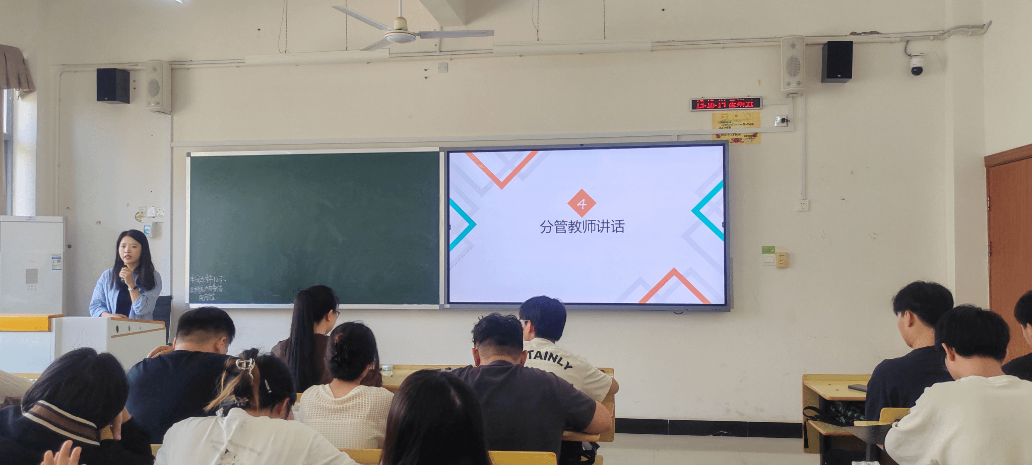 最后,指导老师肖虹老师作总结讲话。在简单介绍了学院大自委的组织框架、招新情况以及未来工作方向后,她强调学生干部应具备的3种能力,情绪控制能力、言语理解能力和解决问题能力。各成员之间要尽快提高熟悉度,找到自己的优势与亮点,立足本职岗位,积极发挥主观能动性,高效完成工作,共促大自委向上向好发展。