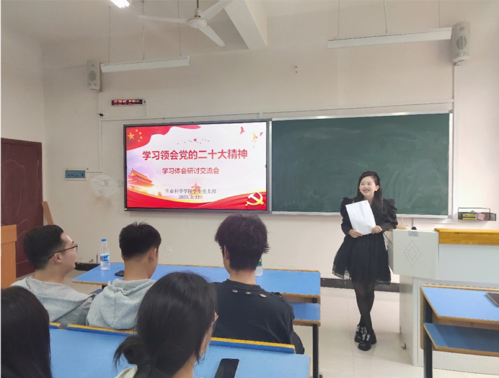 支部书记任梦雅谈到,党的二十大报告全面深刻的展示了百年大党在步入新时代十年征程中所取得的伟大成就。作为一名学生支部书记,要带头学习和领会党的二十大会议精神,不断提升自身的理论水平和解决实际问题的能力。坚持把党的二十大精神作为支部建设工作的引领,把党与时俱进的科学理论作为组织工作的核心指导,坚持两个确立和两个维护,牢固树立四个意识,坚定四个自信,扎实落实立德树人的根本任务。作为一名高校辅导员,要继续坚持五育并举、三全育人,全面构建大思政育人格局,为党育人、为国育才,认真做好服务管理工作,努力培养好担当民族复兴大任的时代新人。