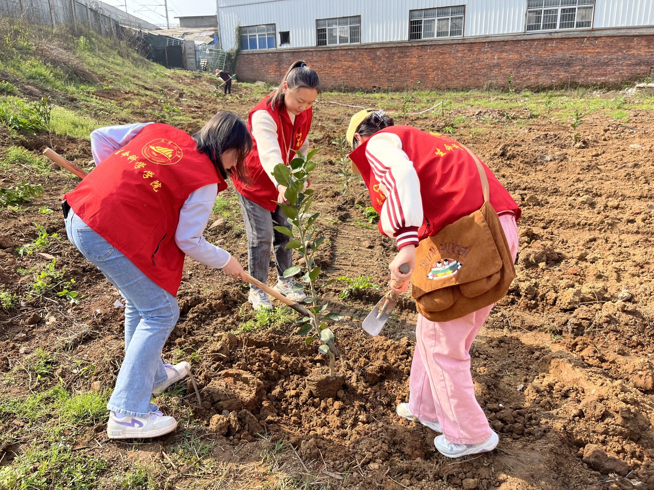为全面贯彻落实党的二十大精神,发挥党支部的战斗堡垒作用,促进校地共同发展,在第45个全民义务植树节到来之际,3月10日上午,我院辅导员肖虹带领学生党员与新生社区党支部在铁路沿线开展“学雷锋植绿树,当卫士守青山”植树活动,并应邀参观了新生社区的活动室。