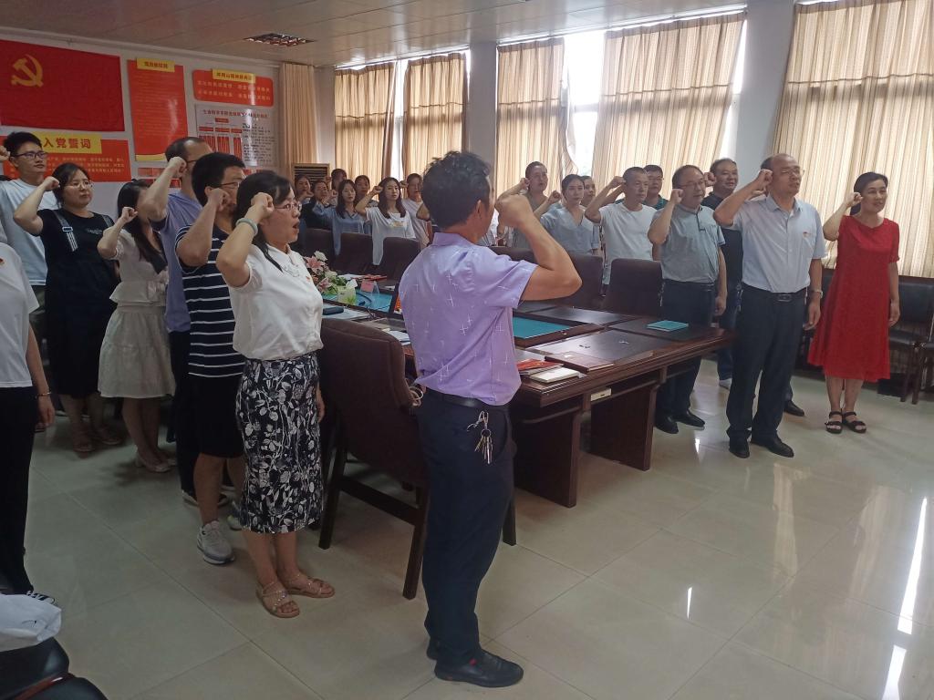 随后,全体党员高声齐唱《没有共产党就没有新中国》和《把一切献给党》两首经典红歌,歌声嘹亮,满腔热情与豪情把整个现场的气氛推向高潮。在党史知识竞答环节,四个小组进行了一场紧张而活泼的比赛,比赛让大家再次重温了党史,又进一步激发了党员学习党史的积极性,达到了以赛促学的良好效果。最后进行的是重温入党誓词仪式,教工党员与学生党员一道,在领誓人的铿锵有力的领读下,重温了入党誓词,又一次检视了自己作为党员的初心使命。