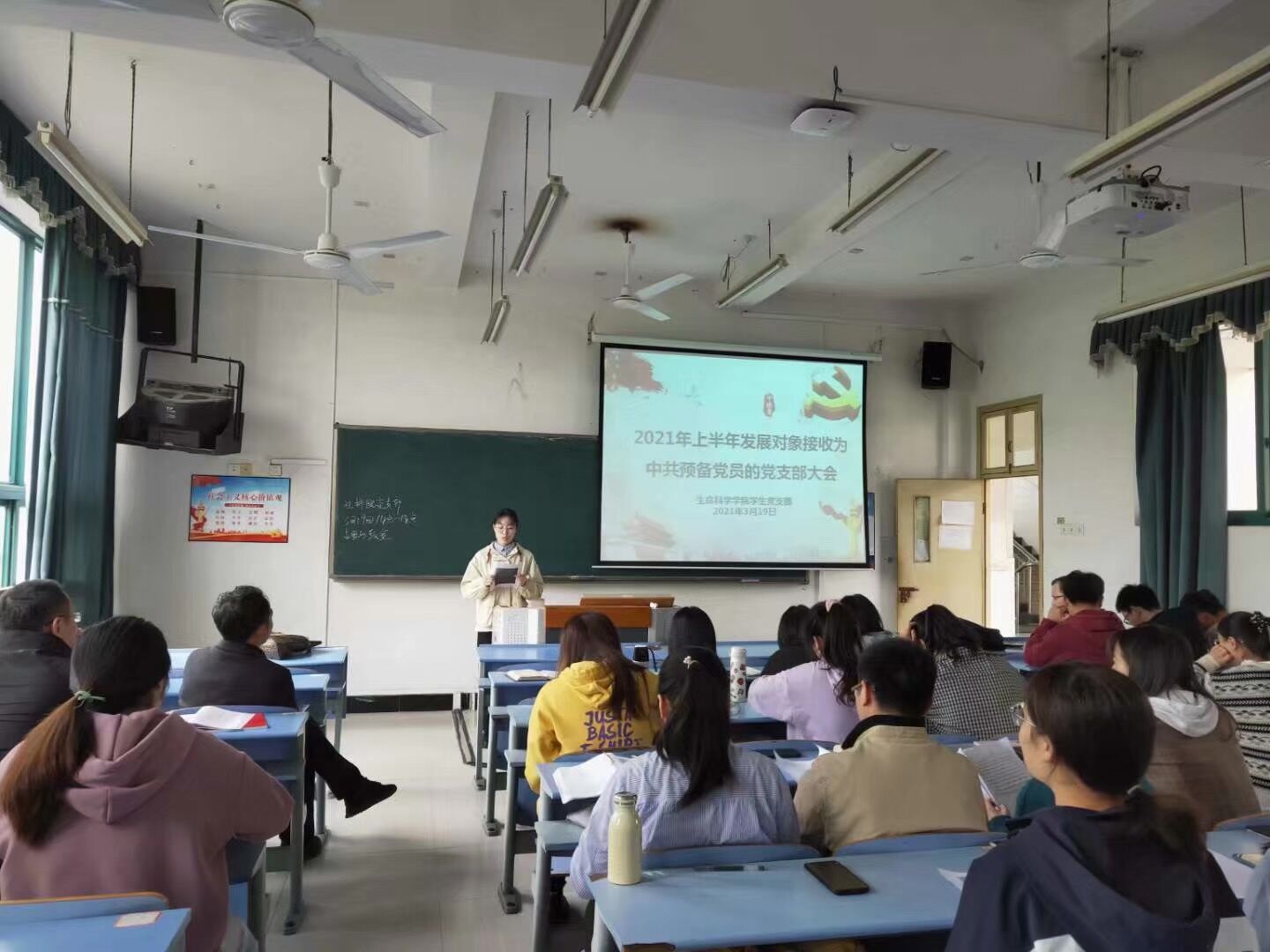 为发展壮大学生党支部队伍,保证学生党员的质量, 3月19日下午,学院学生党支部召开了党支部大会,讨论接收曾欣等13名发展对象为预备党员事宜。入党介绍人、学生党支部书记、全体正式党员参加了会议。会议由支部书记吴丽花主持。