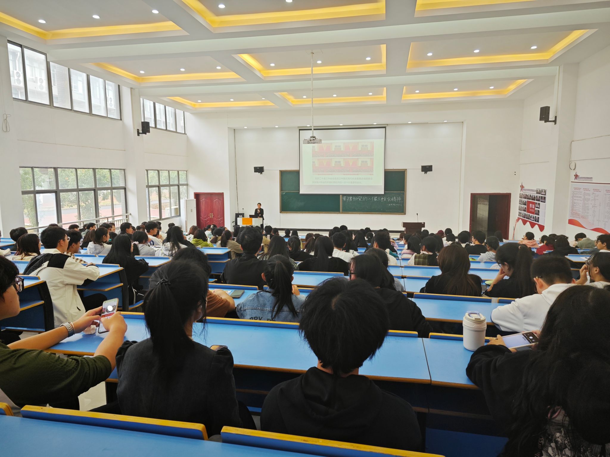 为认真学习宣传贯彻党的二十届三中全会精神,提高学生的理论素质,端正入党动机,11月1日,学院党委书记彭青在21栋106讲授专题党课,学院大骨班学员、学生入党积极分子、发展对象、学生党员共计160余人参加。