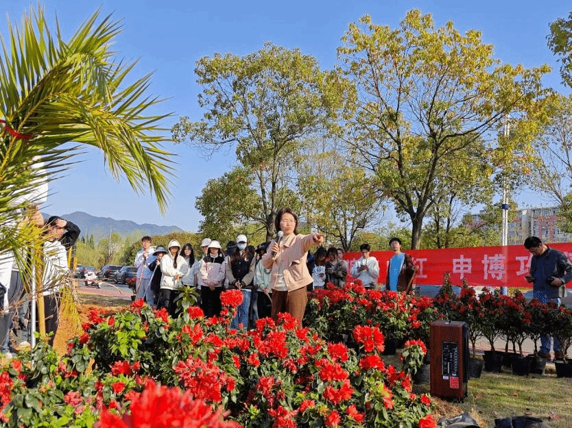 活动特别设置“红色微课堂”环节,学生在劳作间隙聆听胡雪华老师介绍映山红培育技术,学院党委副书记何旭梅讲述学校与映山红的历史渊源。当看到亲手种植的映山红与班徽交相辉映时,学员在活动现场不禁感叹:“我们种下的不仅是映山红,更是红色基因的传承。”